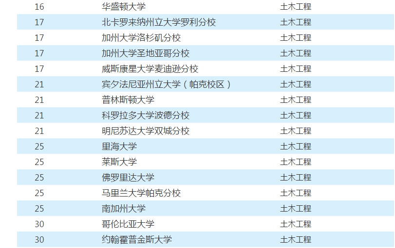 •设有 独立的土木工程/土木与环境工程学院 ,如乔治亚理工学院和普渡大学。学院研究范围比较广泛,一般涵盖土木工程和水资源、大气、噪声污染控制等环境工程领域。
