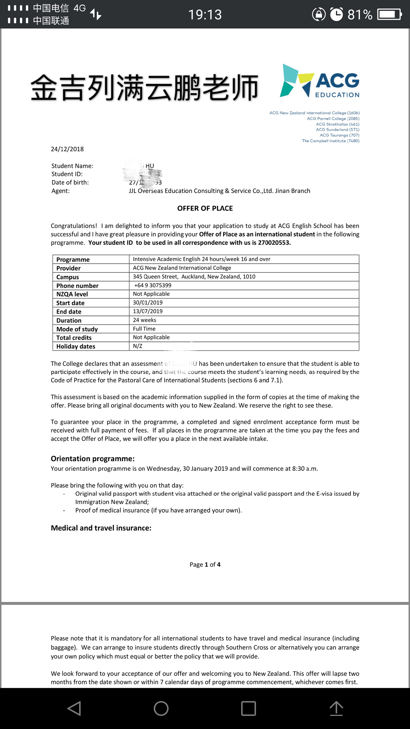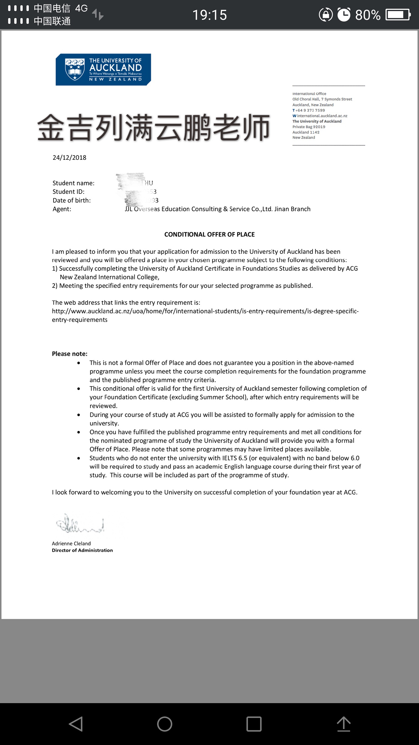 总结:大龄学生申请预本科,新西兰的申请还是非常灵活的,只要申请工作做好,完全可以让学生去读满意的好学校,这是只有大的平台机构能够做到的,同时选择顾问也很重要有想要申请新西兰学校的同学欢迎随时找我~