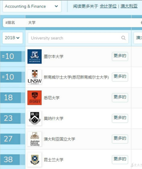 澳洲是发达国家,很注重商科方向的课程,且我国学生80%的留学生去澳洲留学会选择去读商科,所以在澳洲会计金融专业排名前50位的有6所大学,其中墨尔本大学和新南威尔士大学并列排在第10位,且该6所大学综合排名都在世界前100位。该专业排名前100的有麦考瑞大学、皇家墨尔本理工大学、阿德莱德大学、西澳大利亚大学、悉尼科技大学,而麦考瑞大学是澳洲排名紧随在昆士兰大学后面一位的大学,该大学的会计有CPA和ACCA两个方向,能够让学生在学习时期就考到CPA和ACCA这两个证书。