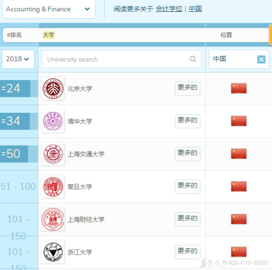 我国是发展中国家,自然也会很注重经济发展,但是我国人口过多,经济发展还在努力中,相对来讲会计金融方向的课程排名靠前的比重不是很高,3所名校该专业排名位于前50位,1所大学位于51-100位,2所大学位于101-150位,2所大学位于151-200位。