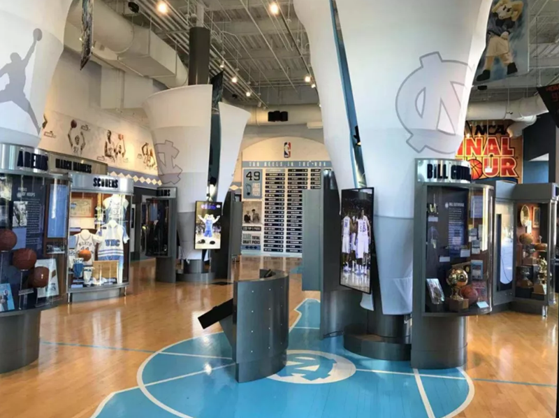 这个是北卡大学篮球博物馆。作为迈克尔乔丹的母校,北卡教堂山始终顶着篮球名校的光环。这里有北卡学生获得七届美国NCAA总冠军的奖牌,记录着这所篮球名校的辉煌和功勋!