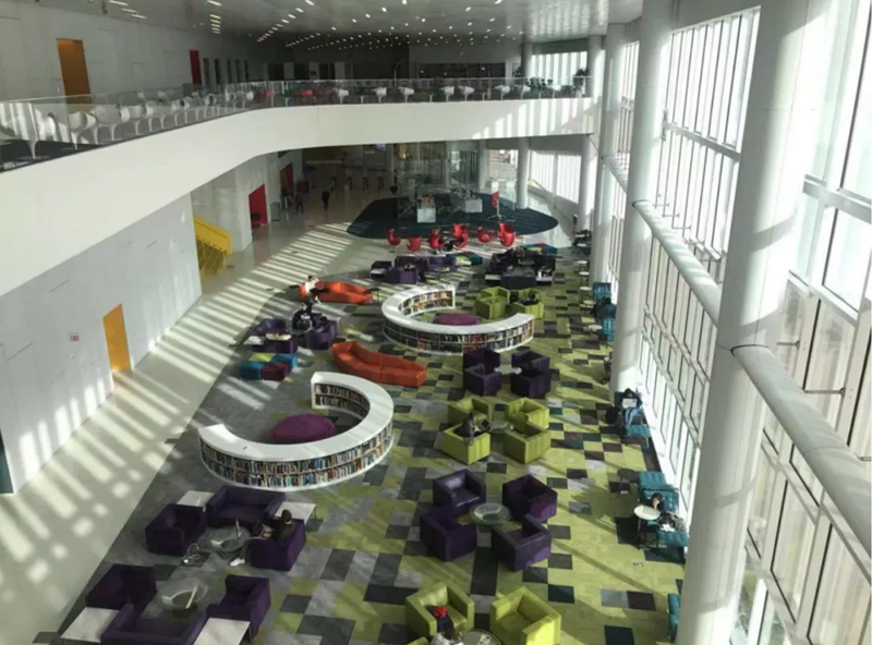 这个建筑是北卡州立大学著名的机器人博物馆,书籍的获取不是传统的手工,而是由机器手代替。圆桌的设计和互动式的座椅,时刻提醒着人们知识本身没有价值,而利用知识解决问题才有价值,知识是用来交流的,教育是用来沟通的。