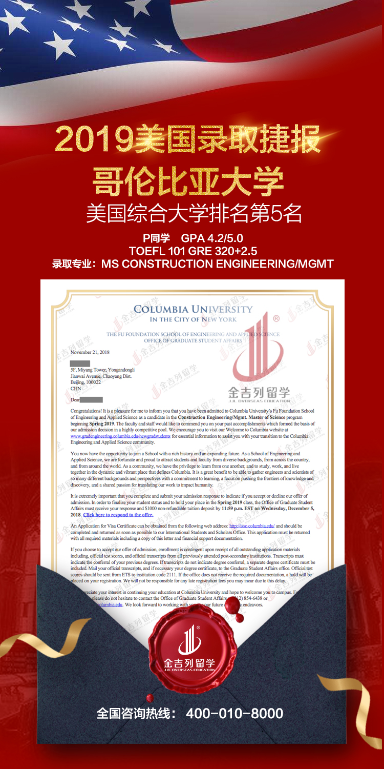 学生对于申请结果十分满意,标化成绩在常青藤申请中并没有太大的优势,主要在文书和简介中突出了学生的综合能力,增加学生的实践背景,留学的准备是一场艰难的战争,要战胜的不只是各类的考试 还要突破自己的固有思维,开阔眼界。规划中注重学生的综合发展,引发学生对于专业的思考,为文书提供更多的素材。名校的要求是学生的潜力,我们只有不断挖掘学生的各方面能力,才能达到学校的要求!