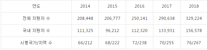 2018年,TOPIK考试在76个国家的267个地区举办,总共有32万9224名考生应试,考生总数首次超过了30万人。