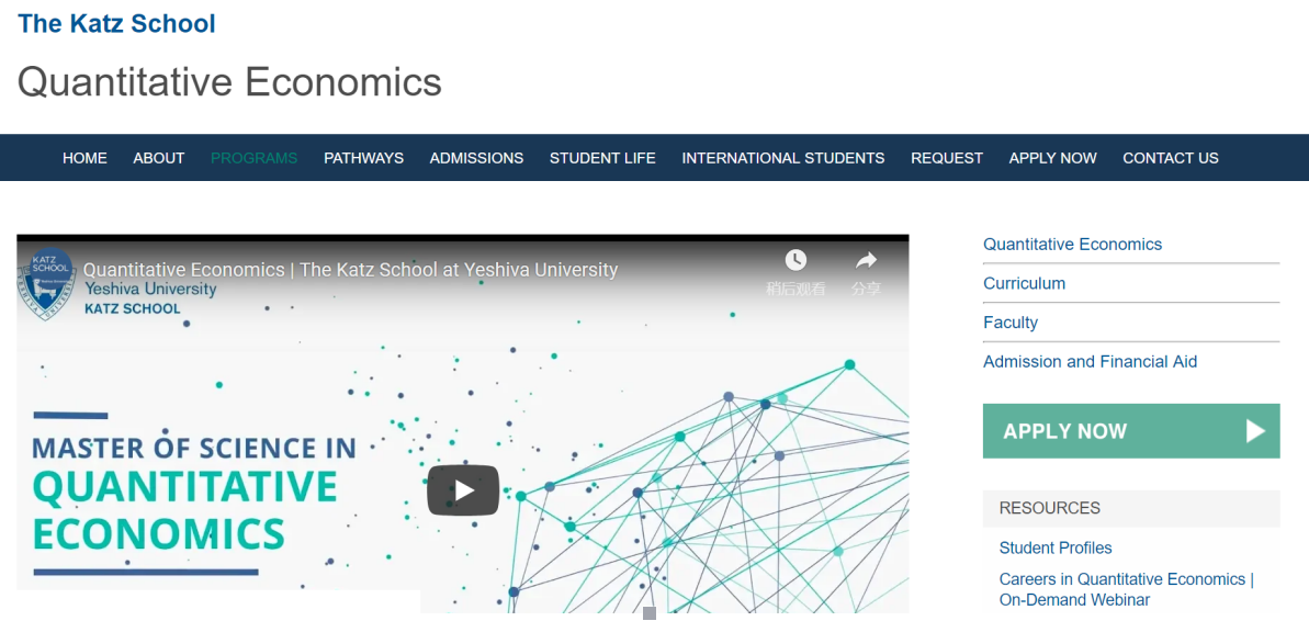 叶史瓦大学——计量经济专业(Yeshiva university——quantitative economics)