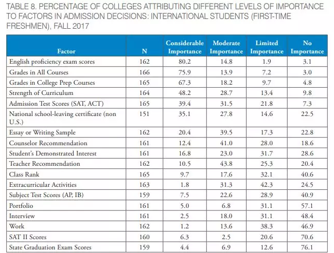 而最新的美国大学招生咨询委员会NACAC报告中也指出, 有75.9%的学校认为GPA很重要; 而13.9%的学校认为GPA中等重要。同样,48.2%对的大学认为你所修的课程难度也是录取的重要因素。所以,千万不要只修“水课”。