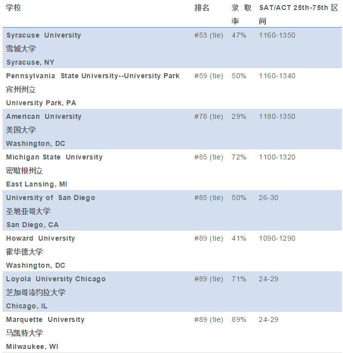 3.7+:如果你的GPA在3.7+,那先恭喜你,你基本上可以申请TOP30的学校里。 最后,任老师奉上USNews评出来的适合B学生申请的A+大学名单,同样,任老师认为这个名单也可以作为大家的“保底校”。
