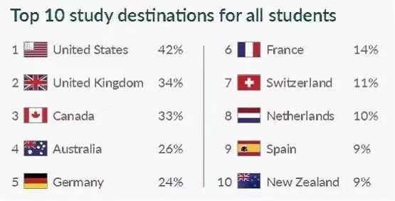 英国教育机构QS发布了2018全球留学报告。报告显示,包括中国在内的亚洲地区,最受欢迎的留学目的国为美国(42%)、英国(34%)、加拿大(33%)。