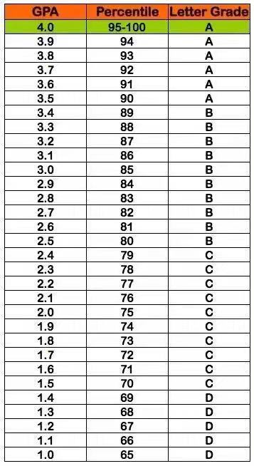 这里提供一个最常用换算Unweighte GPA的对应表格:
