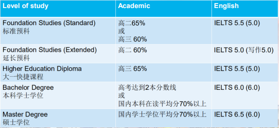 下表就是维多利亚大学的入学要求