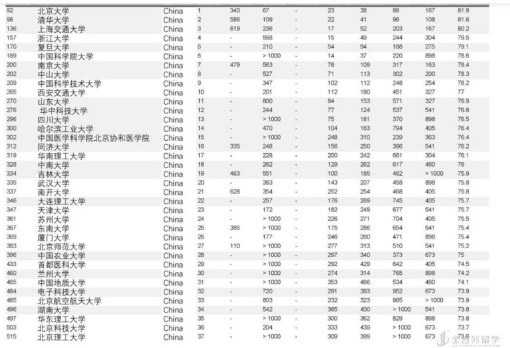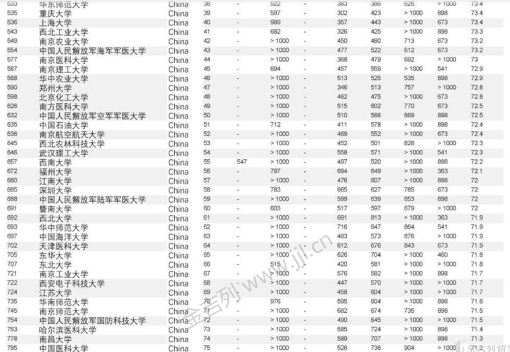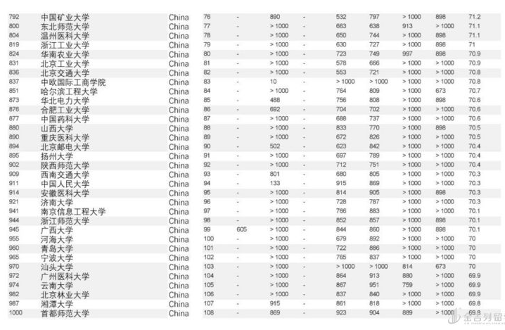 下面是世界大学 1000 名榜单上,入榜的中国高校: