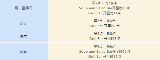 在Mercato,每一位学生都会找到适合自己口味的食物。Mercato超长的营业时间,让学生可以在任何时间来到这里享受美食,得到营养的补充。Mercato营业时间: