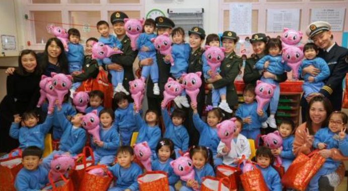解放軍駐香港部隊30餘名海陸空官兵24日前往北區嘉福浸信會幼兒園開展“關愛幼童”活動。這是駐軍自2007年以來第12次組織相關探訪慰問活動,包括本次活動在內,駐軍已派出540餘名官兵慰問646名幼童。