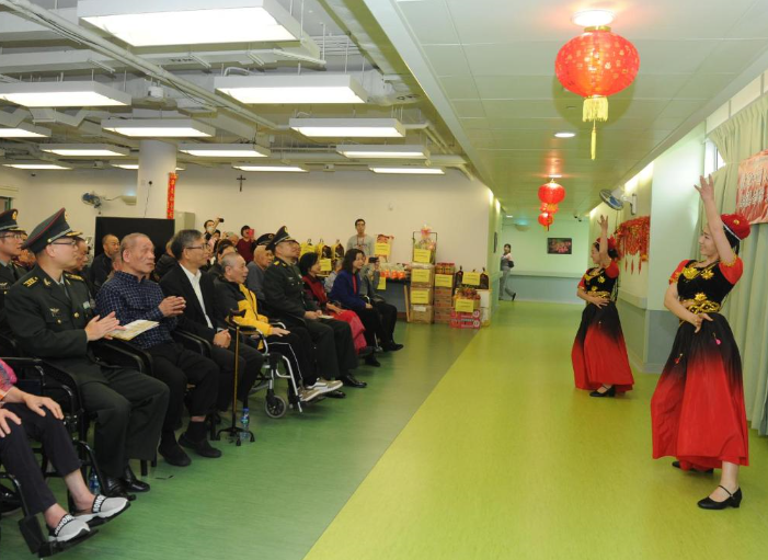 驻军官兵代表和社会工作局人员首先参观了明爱恩晖长者综合服务中心起居室、护士站、宁养室和复健室,并向中心致送果篮、大米、面条、手信等慰问品,还专程看望慰问卧床安养的长者,向为澳门建设发展做出贡献的长者表示敬意和感谢。之后,驻澳门部队官兵代表带着准备的精彩文艺节目向长者们恭祝新春,女兵孙梁燕的川剧绝活“变脸”则让长者们目不转睛、连声称赞,女兵管刘寒、吕湘玉的新疆舞《欢乐的跳吧》把现场带入欢乐和律动的海洋,现场不时爆发出阵阵掌声。“今复长亭折柳,别矣婵娟”,长者冯君玲的粤曲《再折长亭柳》余音绕梁、情意绵绵,引发大家关于人生别离和相会重逢的美好回忆。最后,长者温德明和男兵曹庆超带领大家合唱经典歌曲《月亮代表我的心》,“我的情不变,我的爱不移,月亮代表我的心!”
