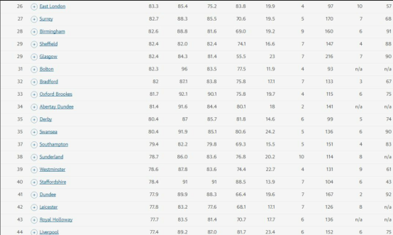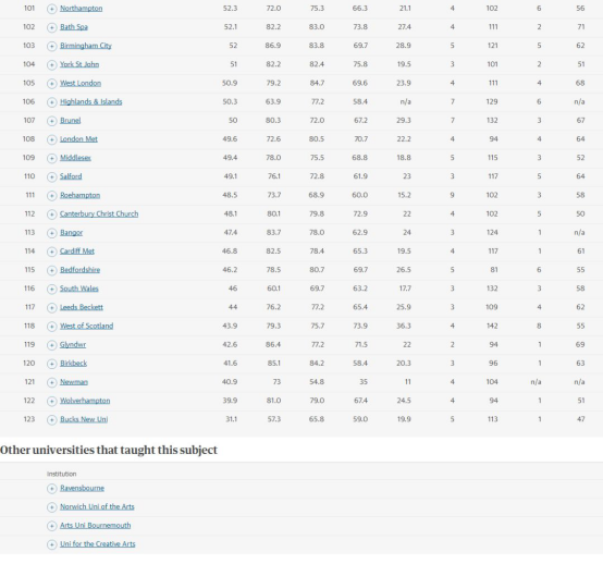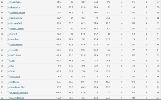 邓迪大学跌的比较惨,从去年5,滑到了今年17