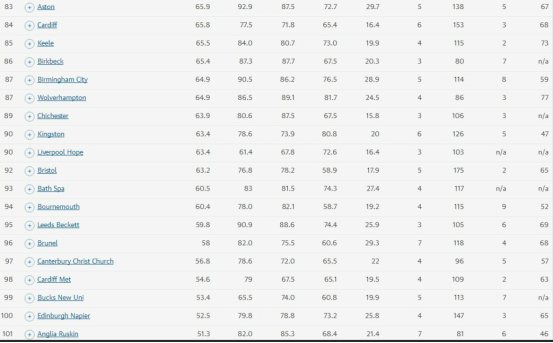 巴斯大学跌的有点惨,去年9,今年就成37了