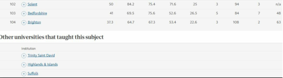 下降比较明显的大学,还有萨里大学(9→27);格拉斯哥大学(10→29);