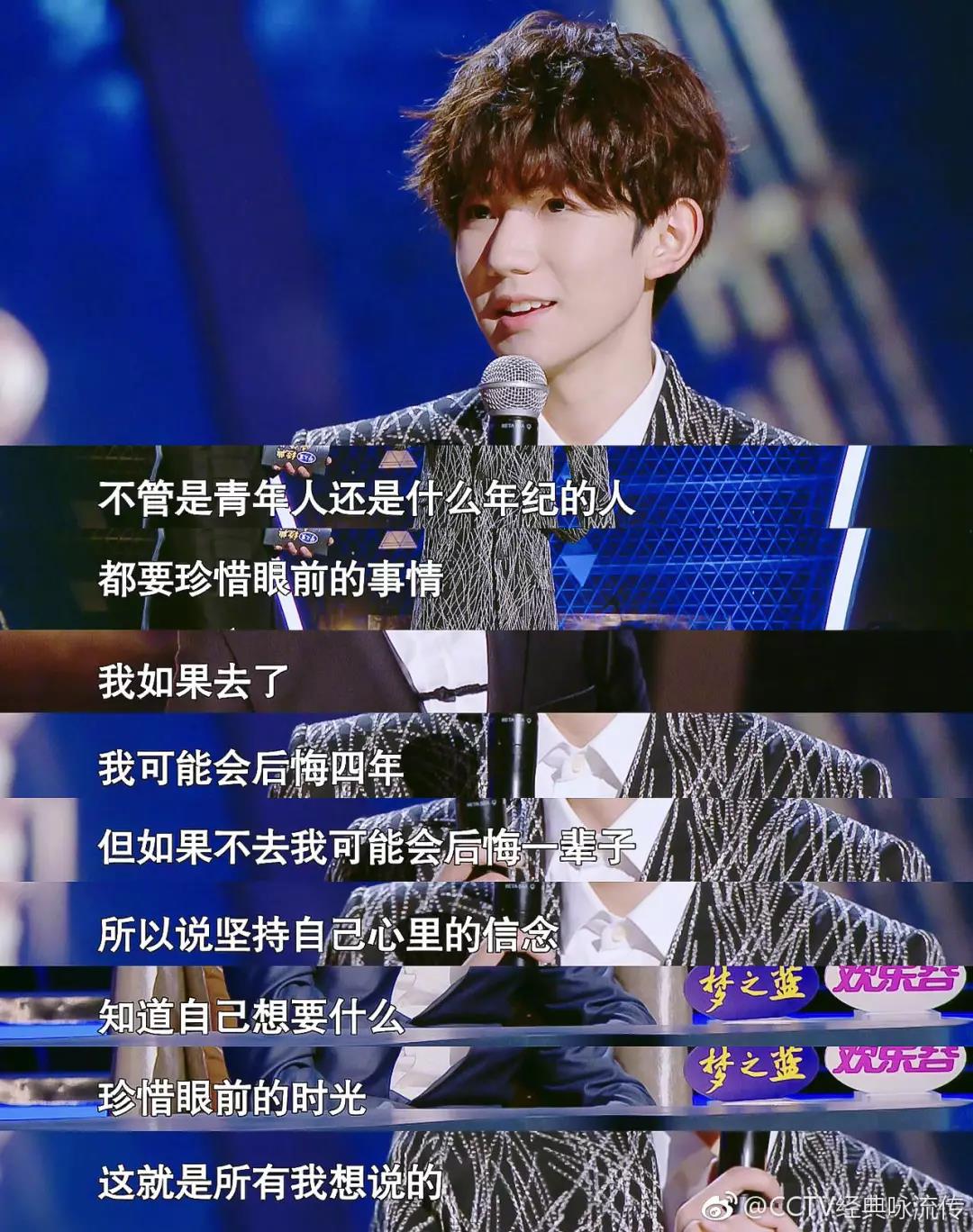 在《经典咏流传》的舞台上,的一席话叫撒老师和前辈连连称赞,明确表示音乐是他的梦想,之后会把重心放在音乐上,喜欢音乐是唯一对他有利的因素。这是首次对出国留学表示的态度,喜欢音乐,从出道以来就一直喜欢,那个时候,很小一只的就曾经许下以后要当一名原创歌手的心愿,现在他的心愿已经实现了,他写了那么多好听的歌曲,但是只要热爱就永远没有满足和放弃。因为喜欢音乐,让做了一个艰难纠结的决定,出国学习音乐,他甘愿放下一切,从头再来,回国后也才二十出头,有什么的,他不想要自己后悔。