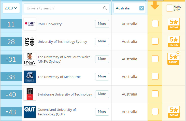 澳洲设计专业QS排名: