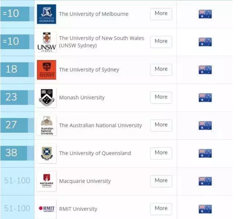 根据2018年QS世界大学排名,澳洲的会计和金融专业有6所高校排在世界前40,分别是新南威尔士大学、墨尔本大学、悉尼大学、澳洲国立大学、蒙纳士大学和昆士兰大学。另外有4所大学排在51-100之间,足以可见澳洲商科专业之厉害!