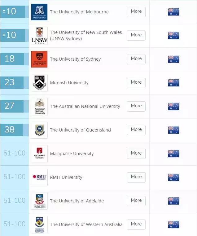 根据2018年QS世界大学排名,澳洲的会计和金融专业有6所高校排在世界前40,分别是新南威尔士大学、墨尔本大学、悉尼大学、澳洲国立大学、蒙纳士大学和昆士兰大学。另外有4所大学排在51-100之间,足以可见澳洲商科专业之厉害!