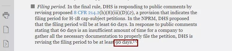 另外,本次新政策还调整了中签后递交材料期限,先前要求申请人中签后,移民局会给60天的时间准备材料,但是考虑到这个期限可能不足以让公司准备好全部所需材料,新政策将补交材料的时间延长为90天。