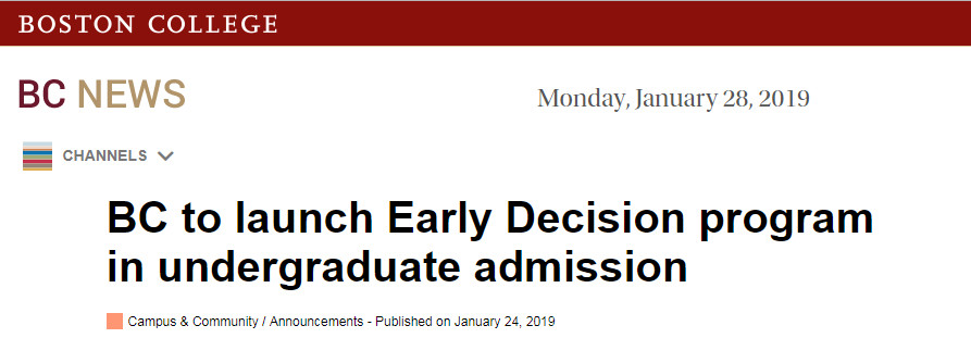 在下个申请季,波士顿学院将加入ED大军,提供ED的学校还包括维克森林大学、塔夫茨大学、西北大学、杜克大学、范德堡大学和埃默里大学等等。