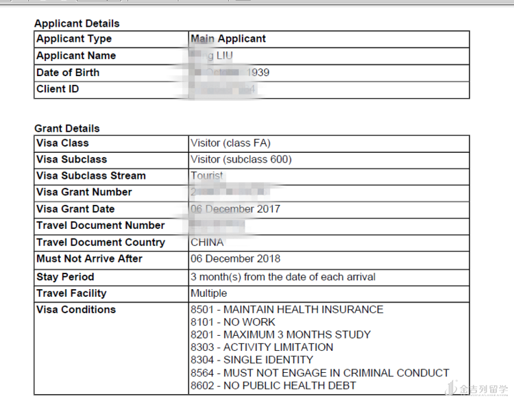 刘先生孙子在金吉列资深顾问安艳青老师处办理澳洲留学,刘先生儿子找到安艳青老师表达了想让父亲去参加孩子毕业典礼的想法,确定了想法后,安艳青老师为刘先生分配了资深的签证老师,详细的指导了刘先生所需要准备的材料,提供了刘先生的退休金,孩子父母双方的工作收入证明,为刘先生安排了体检,以及购买了孩子保险,最终刘先生顺利拿到一年多次往返的探亲签证。