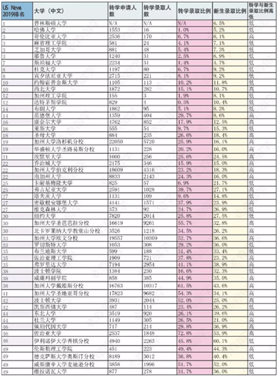 因此,这些转学的优势,也吸引了中国学生申请转学,美本转学申请的数量日趋增长。但对于顶尖私立大学来说,因为其本科生 4 年都住校,如果不增加宿舍楼,只有当之前入学的新生转走,才有机会让出名额给转入的学生,因为私立顶尖大学的资源比较好,所以转学的学生很少,所以转学生名额也少。而顶尖的公立大学,尤其是加州大学体系,倾向于接受本州社区大学转过来的学生。所以在本科新生竞争如此激烈的情况,造成转学申请竞争越来越激烈,实际上对于排名靠前的私立大学,转学的录取率是低于新生的,所以想要转入藤校或者排名在 20 左右的大学,难度很大。但如果你想从排名 50 左右的大学转入前 30 ,录取难度要比新生入学整体要容易一些。
