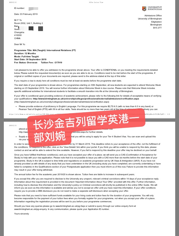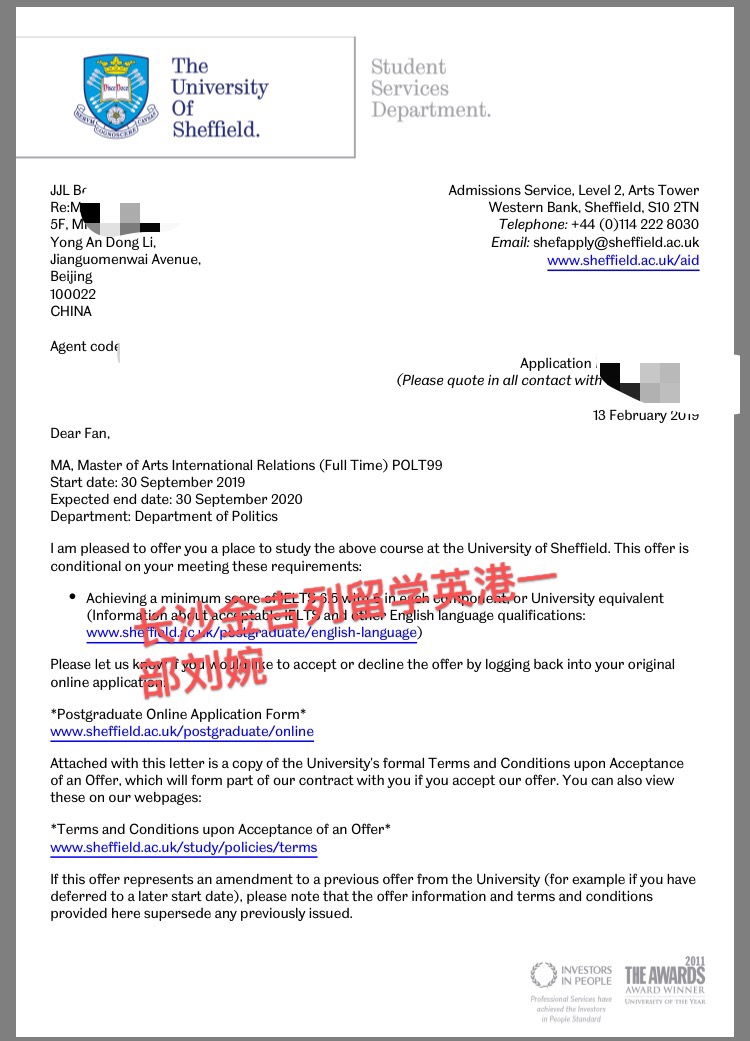 录取学校:谢菲尔德大学、伯明翰大学、约克大学、卡迪夫大学、纽卡斯尔大学