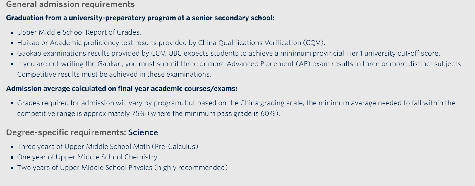 一般录取要求: