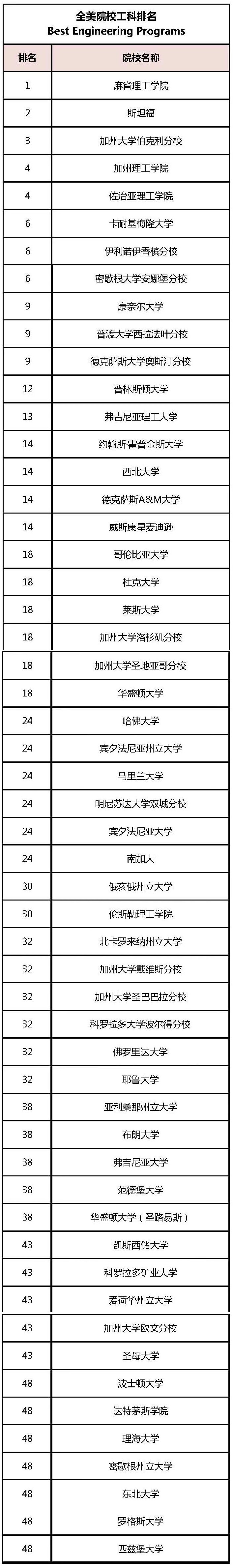 那么美国这么多院校中,哪一所的工科最牛?US.News 也给出了答案 ——Best Unergrauate Engineering Programs 美国最佳工科专业排名 ( 提供博士学位的学校 ) 。