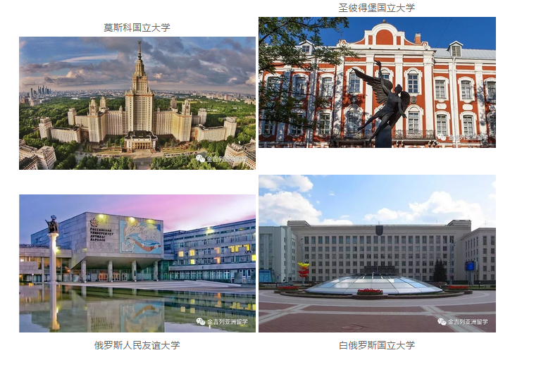 莫斯科国立学、圣彼得堡国立大学、俄罗斯人民友谊大学、白俄罗斯国立大学