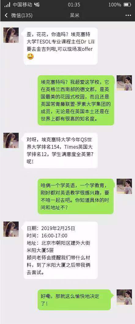 面试专业: 面试 TESOL 课程并现场发 offer;Eucation课程可以给出90%准确建议