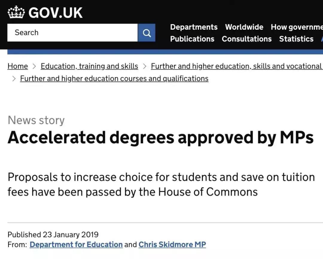 1月22日,根据教育部的提议,下议院批准了立法,两年制“快速学位”即将正式开始实行。