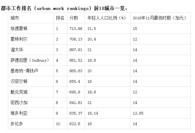 通过分析过去6个月的数据,年轻城市最新公布的首个都市工作指数(总分1,310分)显示,埃德蒙顿以714分名列第一。