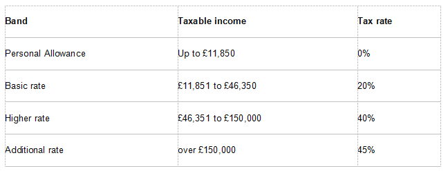 当然了,留在英国以后,想要一直维持免税水平收入是不可能的,下面是一张英国税收表格: