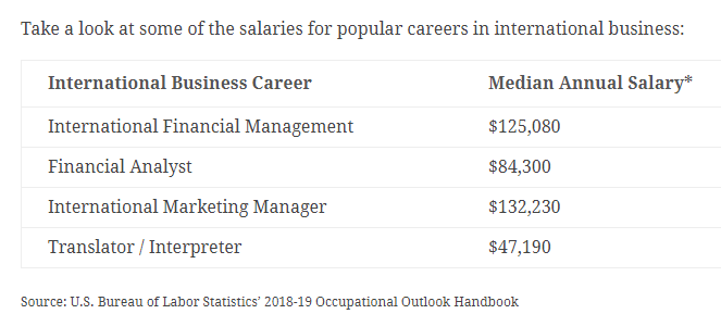 一般来说,你拥有的学位越高,薪水越高:商科本科学生每年可以增加2,000美元至5,000美元或更多的收入潜力,而MBA,国际管理硕士(MIM)或国际商务硕士(MIB)学位可以再增加额外的7,000美元至11,000美元。