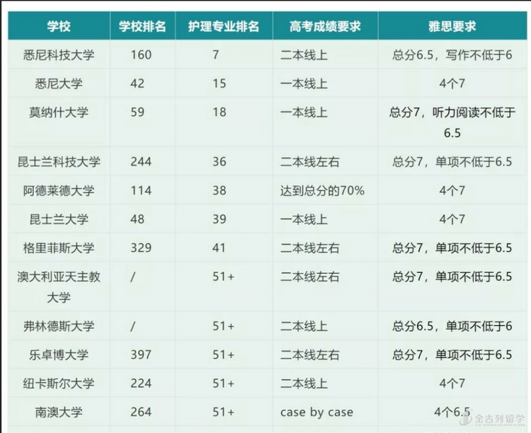预科: 高二即可申请;优势是入学要求相对较低,又可提前适应澳洲授课方式和生活习惯;劣势是多了一年的留学费用,而且澳洲开设nursing预科的学校较少;