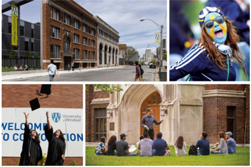 温莎大学是加拿大最南端的公立大学,有着加拿大最温和的气候。位于 加拿大安大略省 温莎市的温莎大学坐落于美加边境的五大湖区,北美洲的工业心脏。温莎市交通便利,人口20万,是 加国 旅游及工业重镇,戴姆拉- 克莱斯勒公司 加国总部即在此,它距离安大略首府 多伦多市 约4小时车程,而到离隔河相望的北美洲汽车城底特律则只需5分钟车程。学生可以乘坐隧道巴士前往底特律,享受一个下午的购物,大型音乐会或专业曲棍球,棒球,足球或篮球比赛。 温莎是加拿大最多民族的城市之一 ,拥有各种餐厅,各种商店和丰富的文化产品的店铺,距离校园仅有很短的步行路程、自行车或巴士车程。
