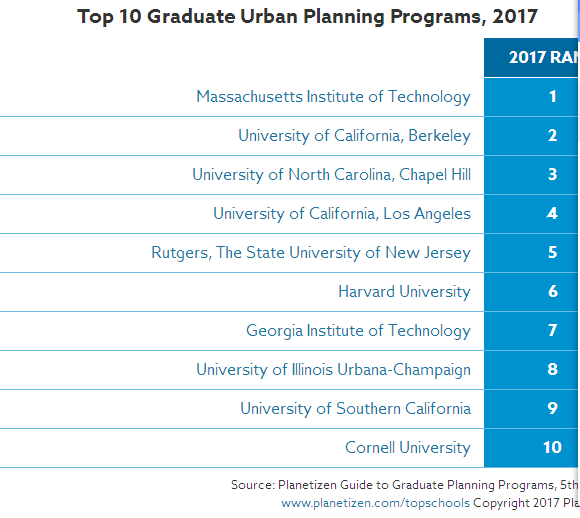 NO.22全美城市规划专业研究生排名top 22 ranke schools for grauate urban planning programs