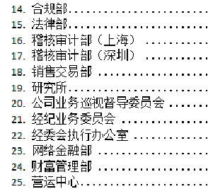 证券公司的部门分类