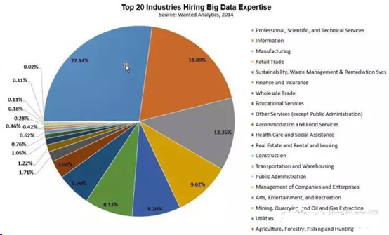 下图显示了2014年第4季度各行业对大数据专长的需求分布。