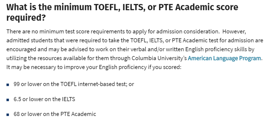 再来看一下这个学校要求的语言是多少TOEFL99雅思6.5,但是根据申请经验来说TOEFL最好在105以上雅思要到7