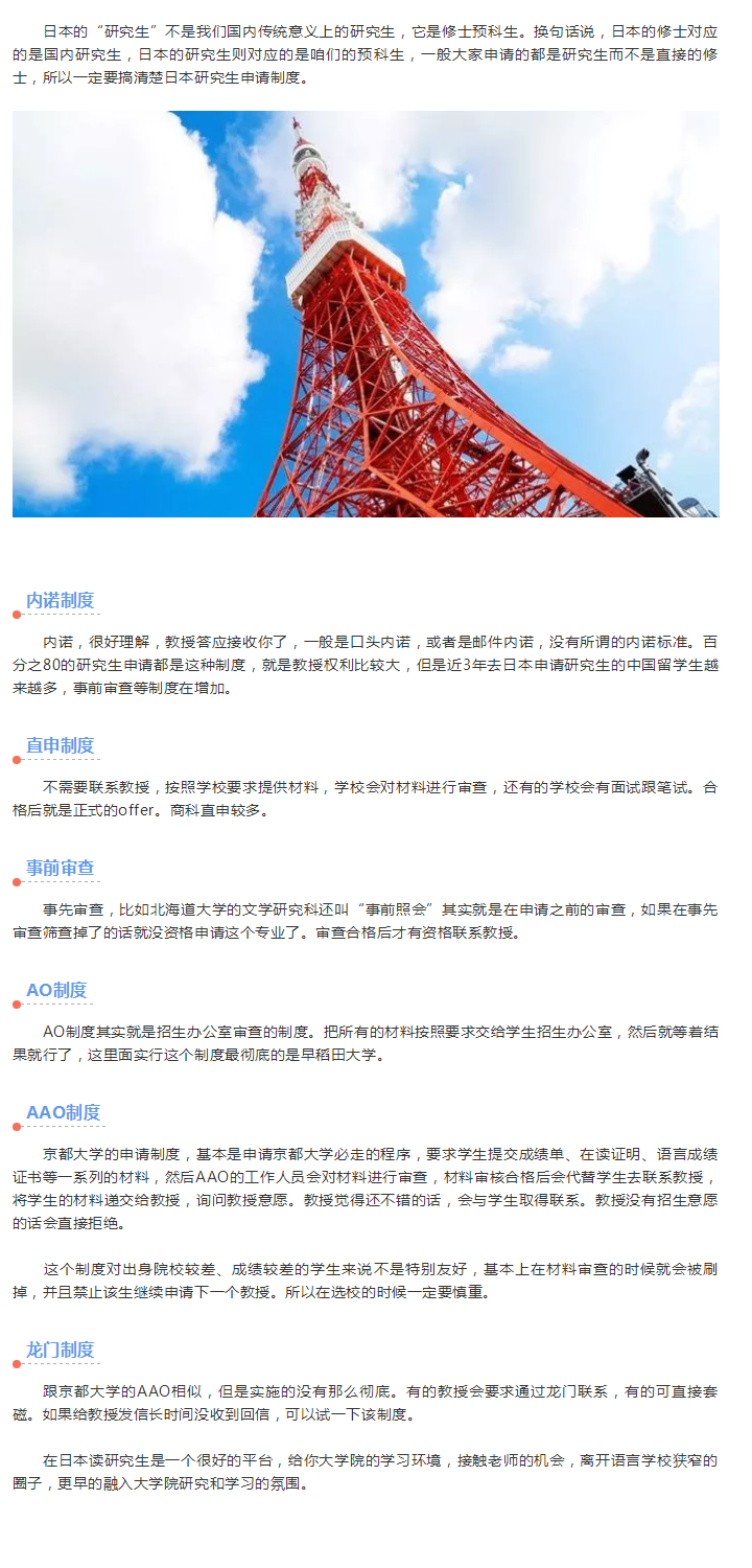 日本的“研究生”不是我们国内传统意义上的研究生,它是修士预科生。换句话说,日本的修士对应的是国内研究生,日本的研究生则对应的是咱们的预科生,一般大家申请的都是研究生而不是直接的修士,所以一定要搞清楚日本研究生申请制度。