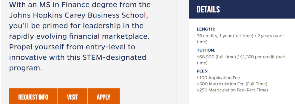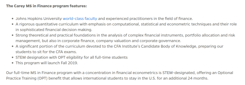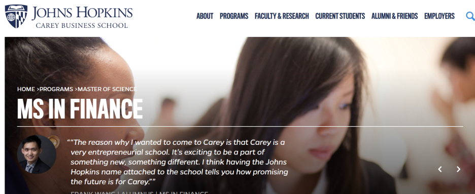 这次带来的院校是USNNEWS排名TOP:10的约翰霍普金斯大学的金融专业。