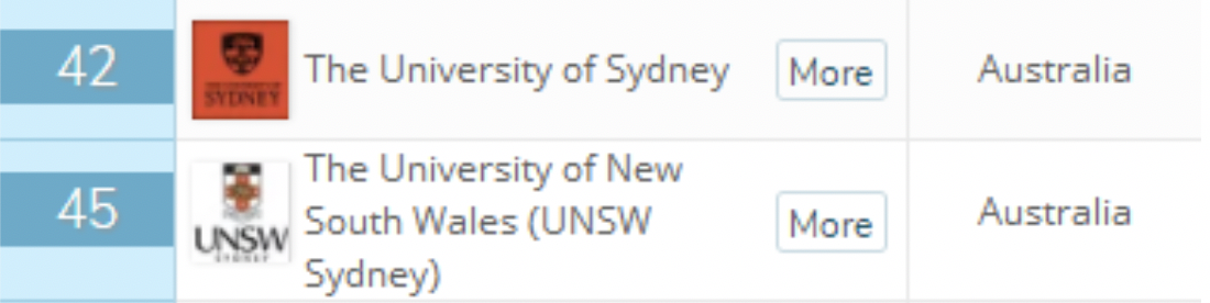 悉尼大学 & 新南威尔士大学世界大学排名。