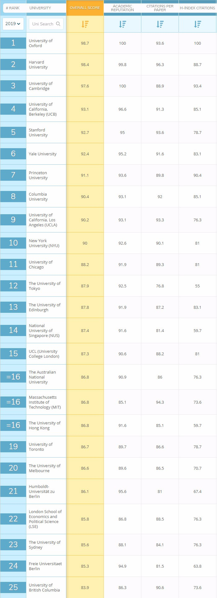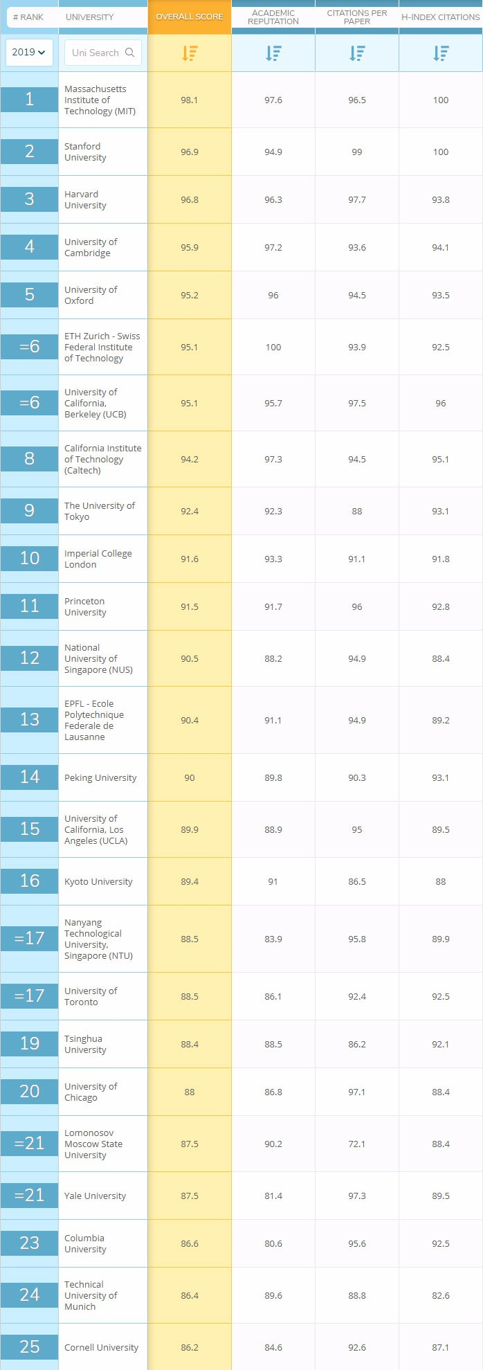 往年QS都是在3月份公布最新世界大学学科排名,今年为了赶超其他家,QS提前公布了2019年度学科排名——QS Worl University Rankings by Subject。还是人文、工程技术、生命科学、自然科学、社会科学五大学科,涵盖48个专业。QS世界大学专业排名主要依据学术声誉、雇主声誉、单篇论文的引用数和H 指数进行排名。