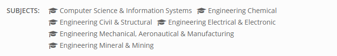 (P.S.清华大学计算机科学与信息系统专业世界第15,北京大学第18;清华大学的化学工程第11,土木与结构工程世界第9,电气电子工程第12,机械与航空制造第14;采矿工程则受地理位置影响较大,像科罗拉多矿业大学就拿了世界第1,南京大学第25)