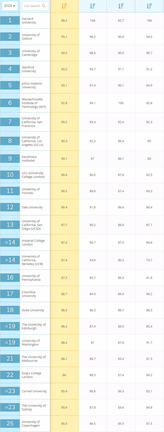 生命科学医学领域一直是西方国家的天下,Top10几乎被英国和美国的大学瓜分,我们国家在这方面还是偏落后,香港大学排名第44,北京大学排名第58,台湾大学59。